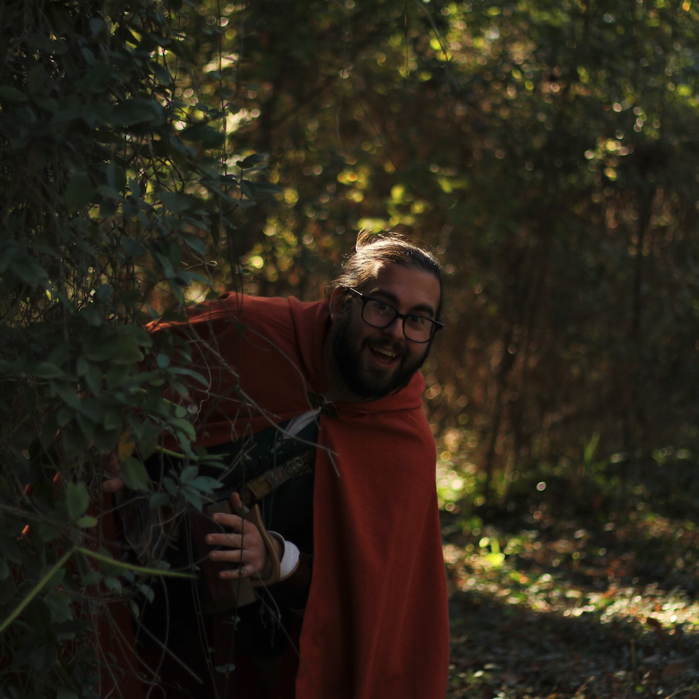 Its your mustard loving, East Coast fool Ellis Vendove aka Alex Villarreal. Ellis is a half-elf bard with a quick wit and an even quicker tongue. A bit too charismatic for his own good. He often finds himself digging himself out of messes he created – like how he made a deal with the demon god of the night. Outside of D&D, you can find Alex cooking, writing music (ps. he writes all of the music you hear on the pod), or taking cat naps with his two kitties.